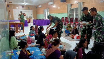 Dalam kesempatan tersebut Dandim juga memberikan bantuan sembako kepada masyarakat di lokasi pengungsian dan memantau ketinggian air di pintu 12.