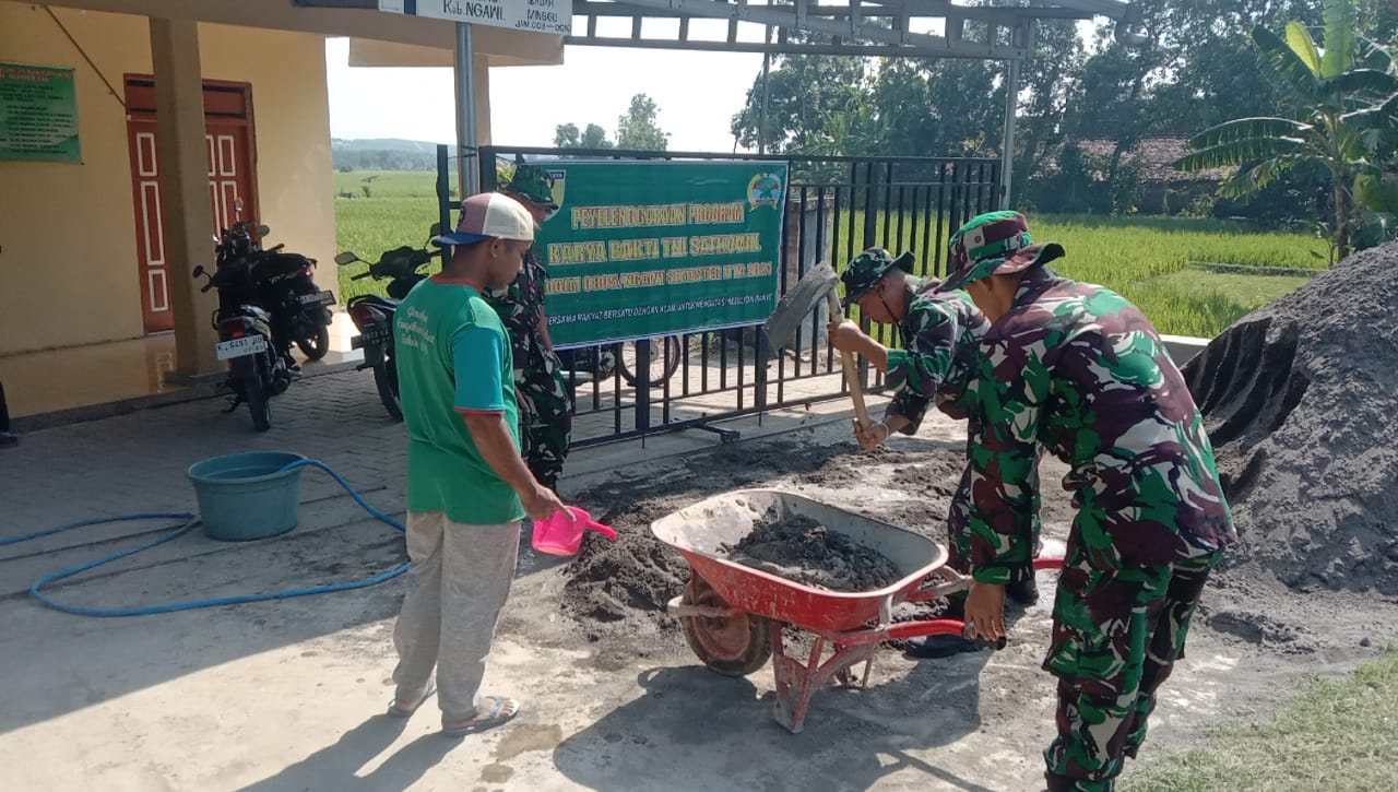 Ngawi, – Anggota Babinsa Padas, Kodim 0805/Ngawi melaksanakan program karya bakti semester II dengan Gotong Royong bersama masyarakat membangun gereja bertempat di Desa Kwadungan lor, Kecamatan Padas, Kabupaten Ngawi, Senin (28/10/2024).