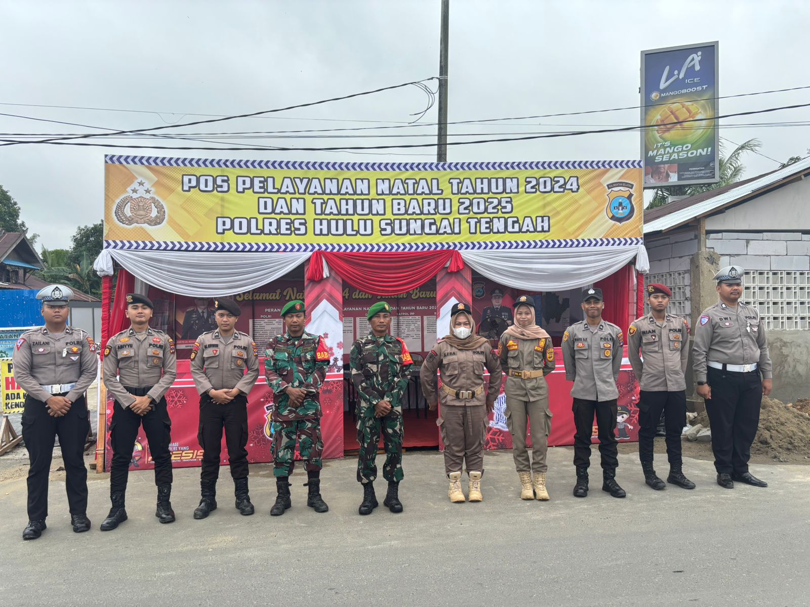 Barabai,HST– Dalam rangka menjaga keamanan dan perdamaian masyarakat selama perayaan Natal 2024 dan Tahun Baru 2025, Kodim 1002/HST, Polres HST, dan Satuan Polisi Pamong Praja Kabupaten Hulu Sungai Tengah telah mengerahkan personel gabungan untuk melakukan pengamanan di berbagai titik strategi, terutama di Pos Pelayanan Burung Anggang Barabai.Minggu (22/12).