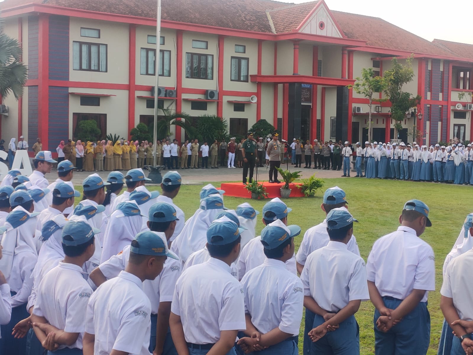Sebelum sosialisasi dilaksanakan di aula, terlebih dahulu diadakan apel bersama dengan para siswa di halaman pada Senin (4/12/2023) sekira pukul 07.00 WIB