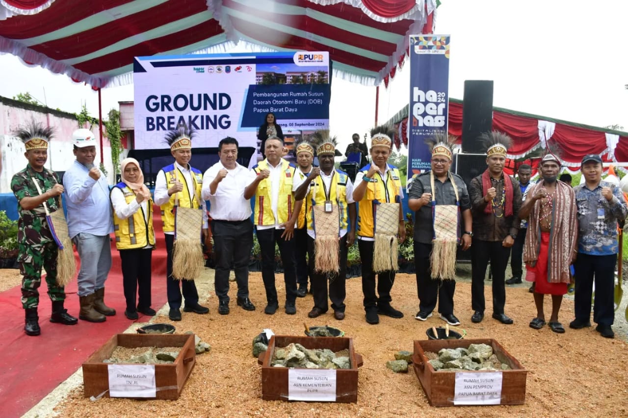 Groundbreaking yang ditandai dengan peletakan batu pertama dan penandatanganan ini menjadi simbol awal pembangunan Rusun DOB di Provinsi Papua Barat Daya sebanyak 3 (tiga) Rusun yang terbagi menjadi dua lokasi pembangunan yaitu di Stadion Wombik dan di Kesatrian Marinir Agoes Soebekti, Mako Pasmar 3.