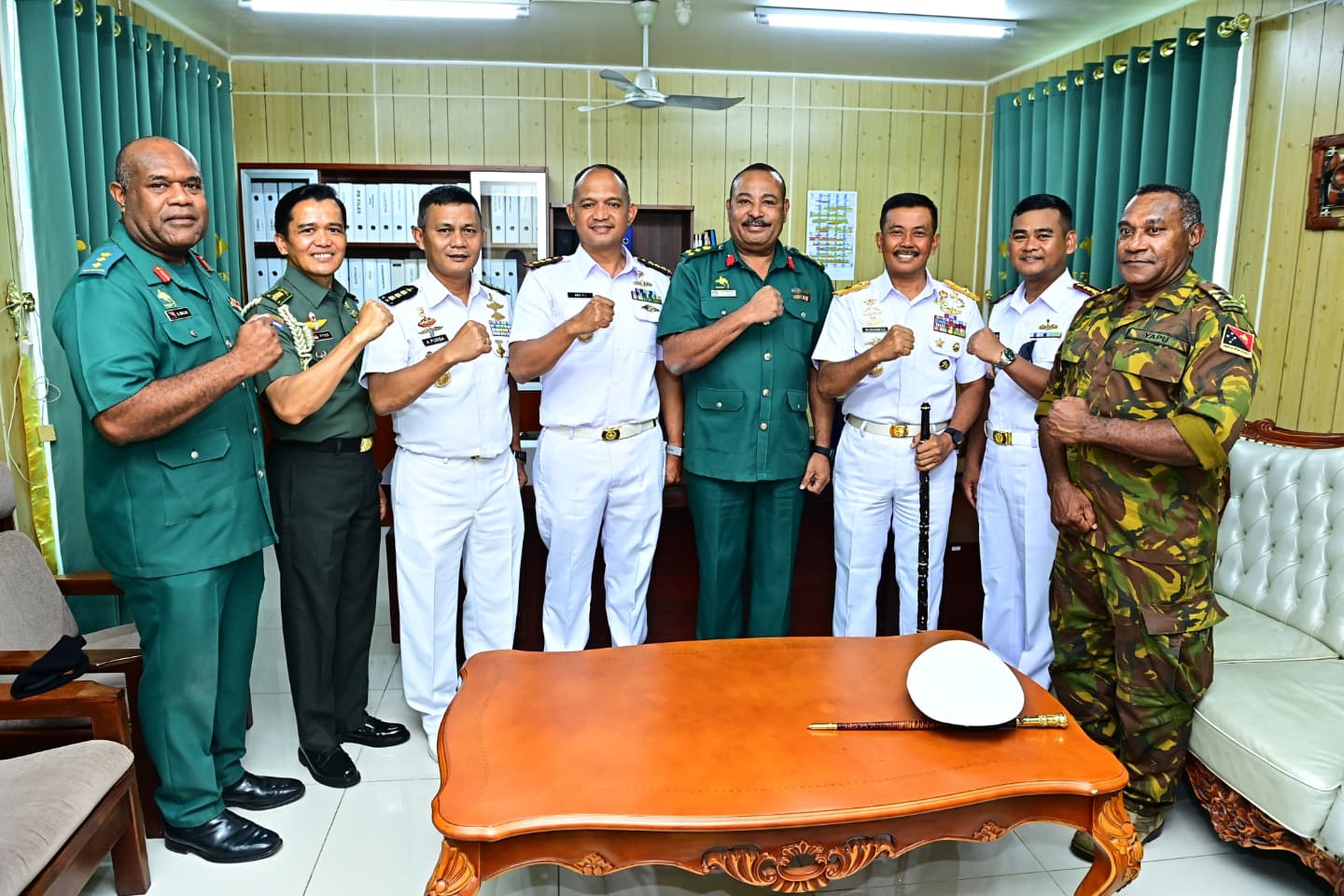 Pada kunjungan pertama di Defence Force Headquarters PNG rombongan disambut langsung Brigadier General Opa Lari Opa, DMS (Deputy chief Defence Force) beserta staf yang mewakili Commander Defence Force (CDF) Col. Raphael Yapu yang menjabat sebagai Chief Of Staf Deputy Commannder di ruang kerja Deputy Mubarrak Port Moresby.