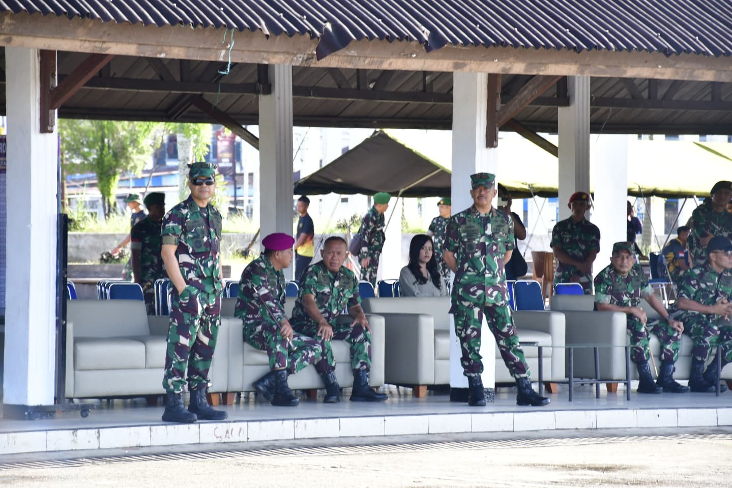 Pada geladi bersih tersebut juga ditinjau oleh Danrem 181/PVT Brigjen TNI Totok Sutriono, S.Sos., M.M., Kas Koarmada III Laksma TNI Singgih Sugiharto, S.E., Danlantamal XIV Sorong Laksma TNI Deny Prasetyo dimana untuk melihat dan memantau perkembangan latihan upacara militer dari mulai parade, demonstrasi, defile Pasukan hingga material Tempur TNI.