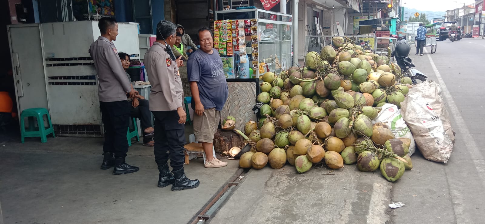 Majalengka – Kapolsek Cikijing Polres Majalengka Polda Jabar Kompol Romdani, S.H didampingi Bhabinkamtibmas Bripka Achmad Supriyono melaksanakan patroli siang dan menyambangi penjual kelapa di Desa Cikijing Kecamatan Cikijing Kabupaten Majalengka untuk melakukan dialogis dan menyampaikan pesan-pesan Kamtibmas, Minggu (09/06/2023).