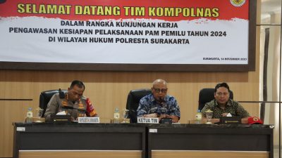 Tak hanya Polrestabes Semarang, Kompolnas juga melakukan kunjungan ke Polresta Surakarta yang diterima Kapolresta, Kombes Pol. Iwan Saktiadi, S.I.K., M.H., M.Si dan PJU. Saat kunjungan itu, Kompolnas mendapat paparan persiapan pengamanan Pemilu 2024.