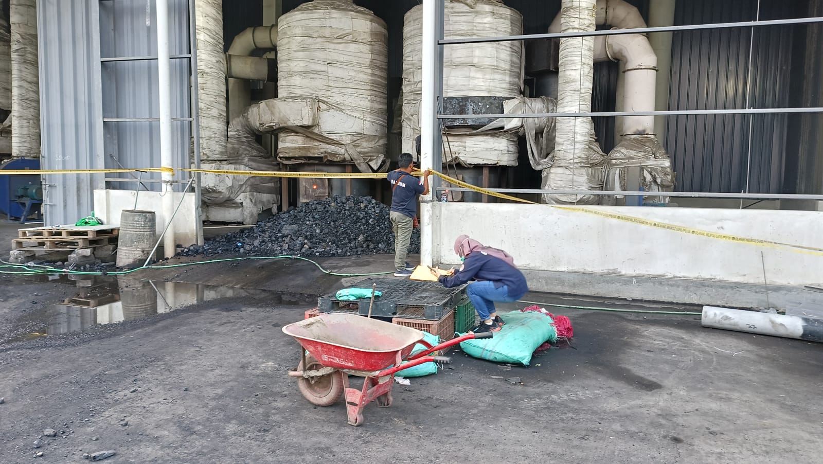 Polis Line itu terlihat di pembuangan cerobong asap dari hasil pembakaran baru bara, terus yang di depan pintu air pembuangan bekas cuci Porang(limbah).