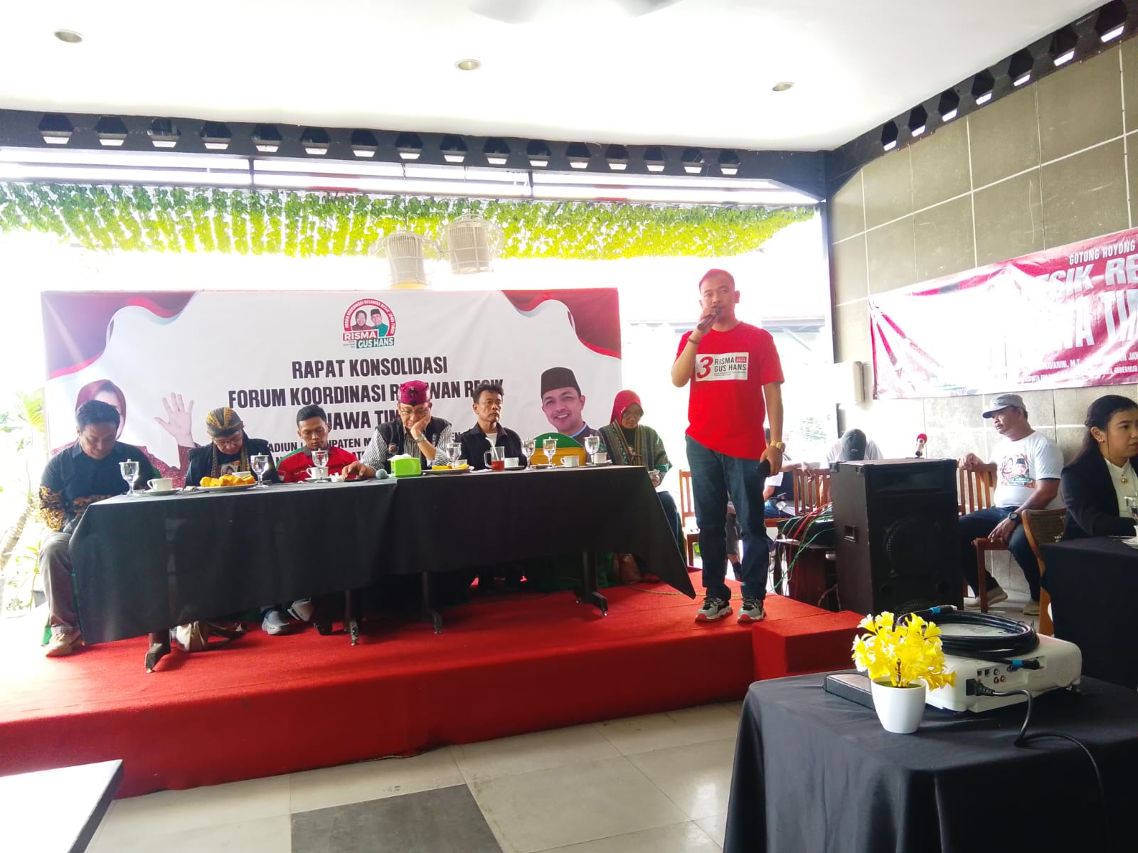 Para relawan yang datang sangat antusias sekali mendengarkan paparan materi perang darat dan udara. “Ini bukan rapat akan tetapi ini konsolidasi dan pendataan para pemilih yang sudah dilakukan selama ini sehingga saya dapat melaporkan ke pusat tentang kekuatan relawan dari 38 kota dan kabupaten.”