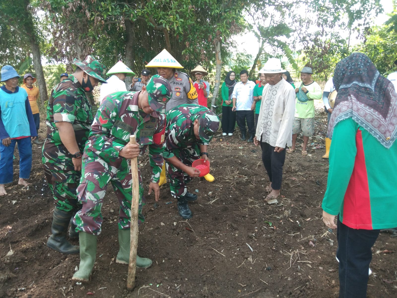 Hadir saat menanam jagung, yakni Danramil 1711 Sumberjaya, Camat Palasah, Kapolsek Palasah, BPP Kecamatan Palasah, Kades Majasuka dan Kelompok Tani Desa Majasuka. (Pendim_0617)