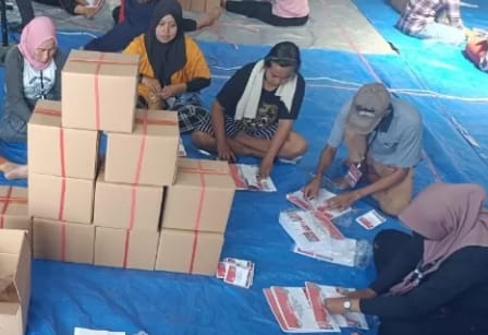 “Para pekerja ini tidak hanya melipat, namun sekaligus juga melakukan penyortiran surat suara, jumlahnya 1.250 orang pekerja ditambah 50 orang pengawas dan tenaga administrasi,”Ucap Nanang.