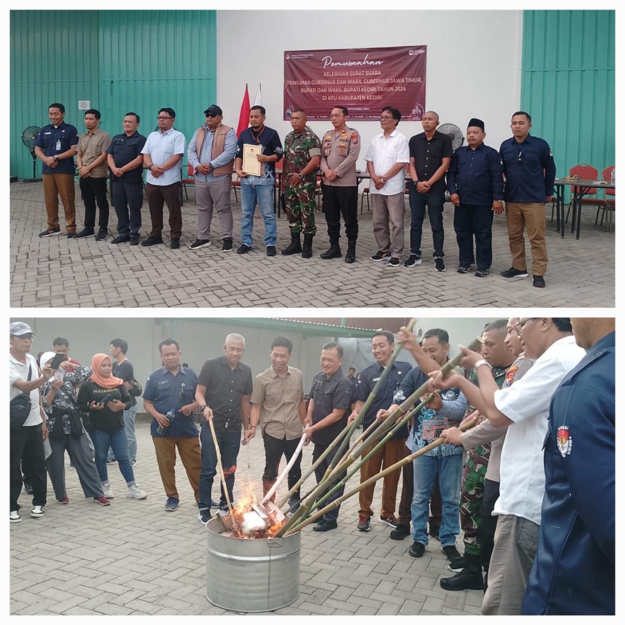 “Ketua KPU Kabupaten Kediri Nanang Qosim menyampaikan,berkaitan dengan pengaman surat suara pilkada tahun 2024 pemilihan gubenur jawa timur sebanyak 120 lembar surat suara yang rurak, sedangkan surat suara pemilihan bupati sebanyak 69 lembar,
