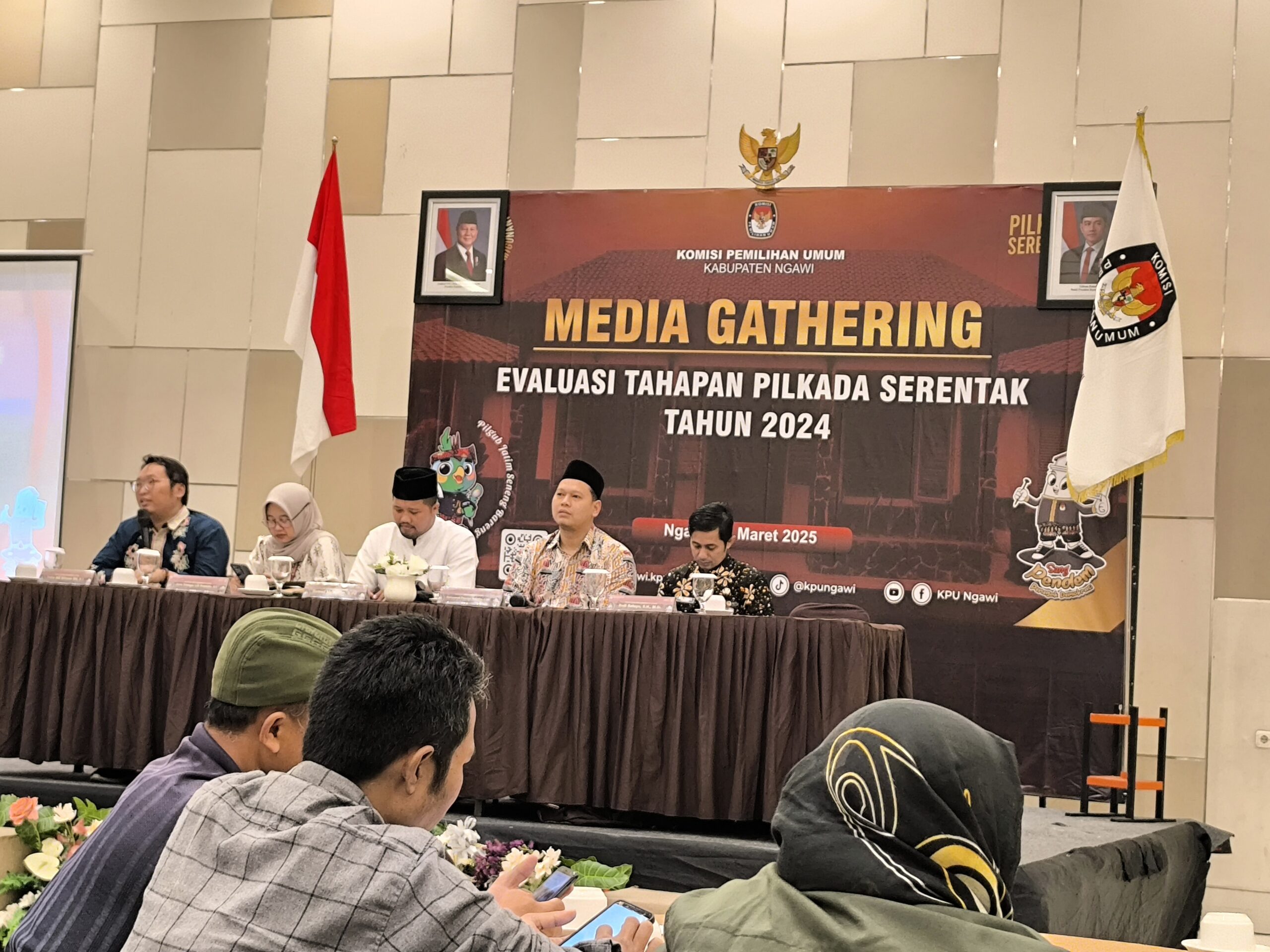 NGAWI ,BUSERJATIM.COM – Komisi Pemilihan Umum (KPU) Kabupaten Ngawi menggelar Media Gathering untuk mengevaluasi tahapan Pilkada Serentak 2024. Acara ini berlangsung di Kurnia Convention Hall, yang berlokasi di Jalan Ir. Soekarno, sebelah barat GOR Bung Hatta, Ngawi, Jumat (21/3/2025).