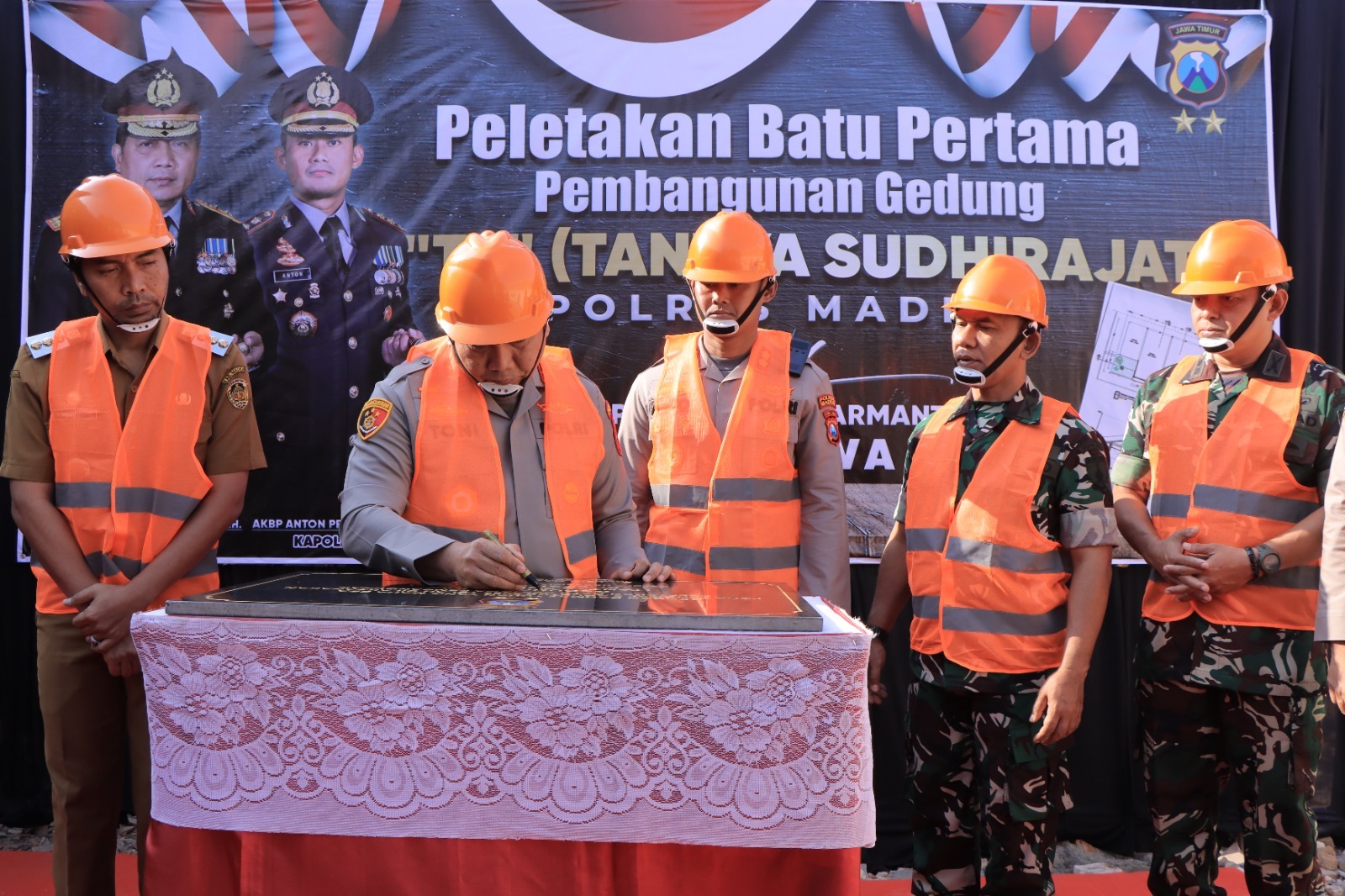 AKBP Anton Prasetyo menjelaskan gedung yang akan dibangun nantinya akan digunakan sebagai tempat rapat anggota Polres Madiun maupun sebagai tempat pimpinan memberikan arahan kepada anggota.
