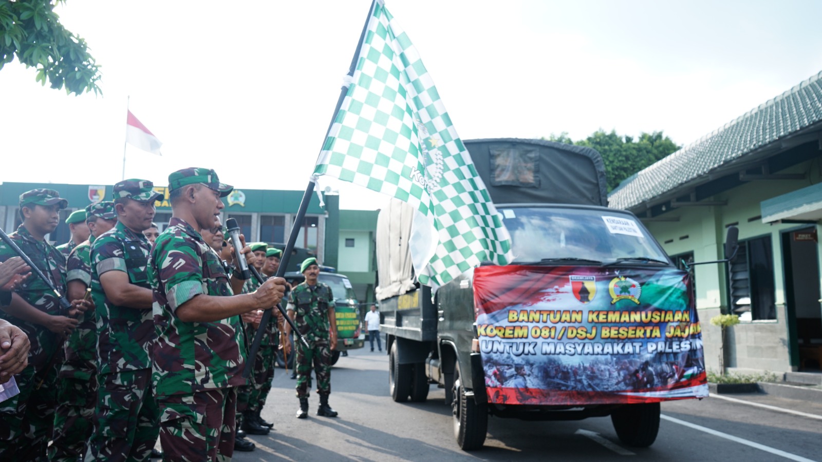 MADIUN,BUSERJATIM.COM GROUP – Sebanyak 6 truk bantuan kemanusiaan dikirimkan Korem 081/DSJ untuk membantu rakyat Palestina yang menjadi korban konflik di Gaza. Bantuan itu berupa bahan makanan, obat-obatan, selimut, susu bayi, pampers, hingga pakaian.