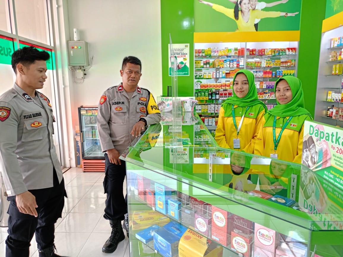Majalengka – Ka SPKT l Polsek Cikijing Polres Majalengka Polda Jabar Aipda Asep Nugroho dan Bhabinkamtibmas Briptu Pijar menyambangi Apotek K-24 di Blok Salasa Desa Cikijing, Kecamatan Cikijing, Kabupaten Majalengka, Senin (31/07/2023).