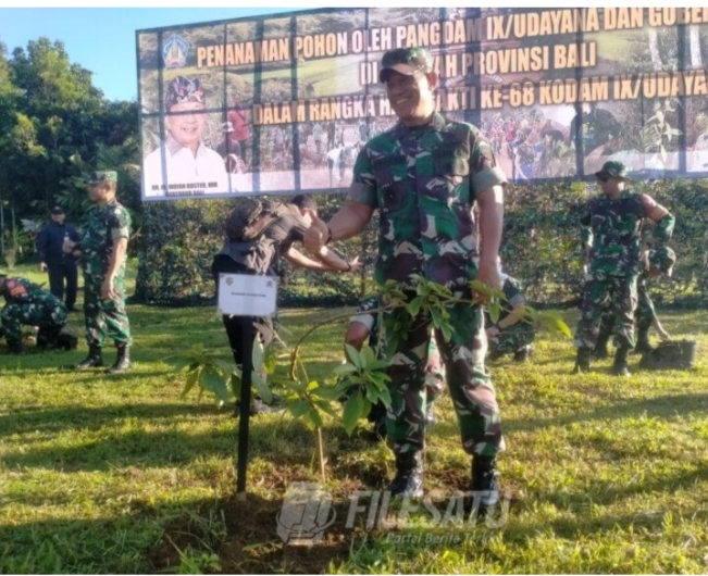 Pada kesempatan yang baik ini Pangdam IX/Udayana Mayjen TNI Piek Budyakto, S.H., M.H, mengatakan bahwa kegiatan Penanaman Pohon secara serentak ini merupakan salah satu rangkaian kegiatan dalam rangka Hari Bakti ke-68 Kodam IX/Udayana Tahun 2025, selaras dengan program unggulan Kasad, yaitu “TNI AD Bersama Rakyat Bersatu Dengan Alam Untuk NKRI”. Penanaman Pohon ini, merupakan aksi nyata dalam mewujudkan kepedulian terhadap kelestarian alam dan ekosistem. Selain itu juga sebagai upaya bersama untuk merefleksikan betapa pentingnya sinergi dan kolaborasi berbagai elemen masyarakat dalam memulihkan, menjaga, dan meningkatkan kualitas lingkungan hidup. Harapannya, kegiatan ini dapat menjadi inspirasi bagi kita semua untuk terus bersatu dalam menjaga kelestarian alam sehingga dapat mengurangi dampak perubahan iklim, mengurangi risiko bencana alam, seperti banjir, kekeringan, dan longsor. Termasuk terciptanya ruang terbuka hijau yang dapat dimanfaatkan untuk rekreasi, edukasi, dan aktivitas sosial masyarakat, serta mendukung program pembangunan berkelanjutan dengan menciptakan lingkungan yang sehat dan lestari bagi generasi sekarang dan mendatang.