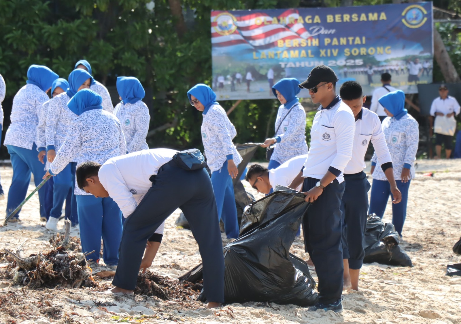 Kegiatan ini dipimpin langsung oleh Komandan Lantamal XIV Sorong, Laksamana Pertama TNI Joni Sudianto, CHRMP., M.Tr.Opsla., dan diikuti oleh Pramuka Saka Bahari, Jalasenastri Korcab XIV Dja III, serta seluruh personel Lantamal XIV. Acara dimulai sejak pagi hari dengan apel yang melibatkan seluruh peserta. Setelah apel, mereka melanjutkan dengan bersih-bersih pantai, mengumpulkan sampah plastik dan limbah lain yang mencemari ekosistem Pulau Matan. Setelah selesai kegiatan bersih pantai, dilanjutkan dengan olahraga bersama, seperti voli pantai, tarik tambang, dan snorkeling.