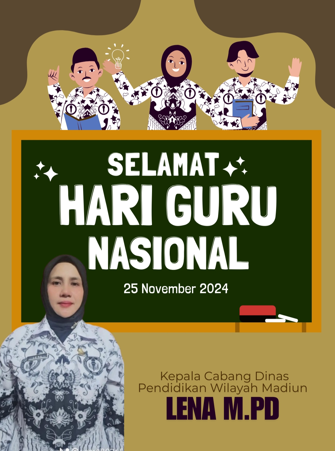 Lena M. pd,Kepala Cabang Dinas pendidikan Wilayah kota Madun, Kabupaten Madiun dan Kabupaten Ngawi, ucapan Hari guru tanggal 25 November 2024