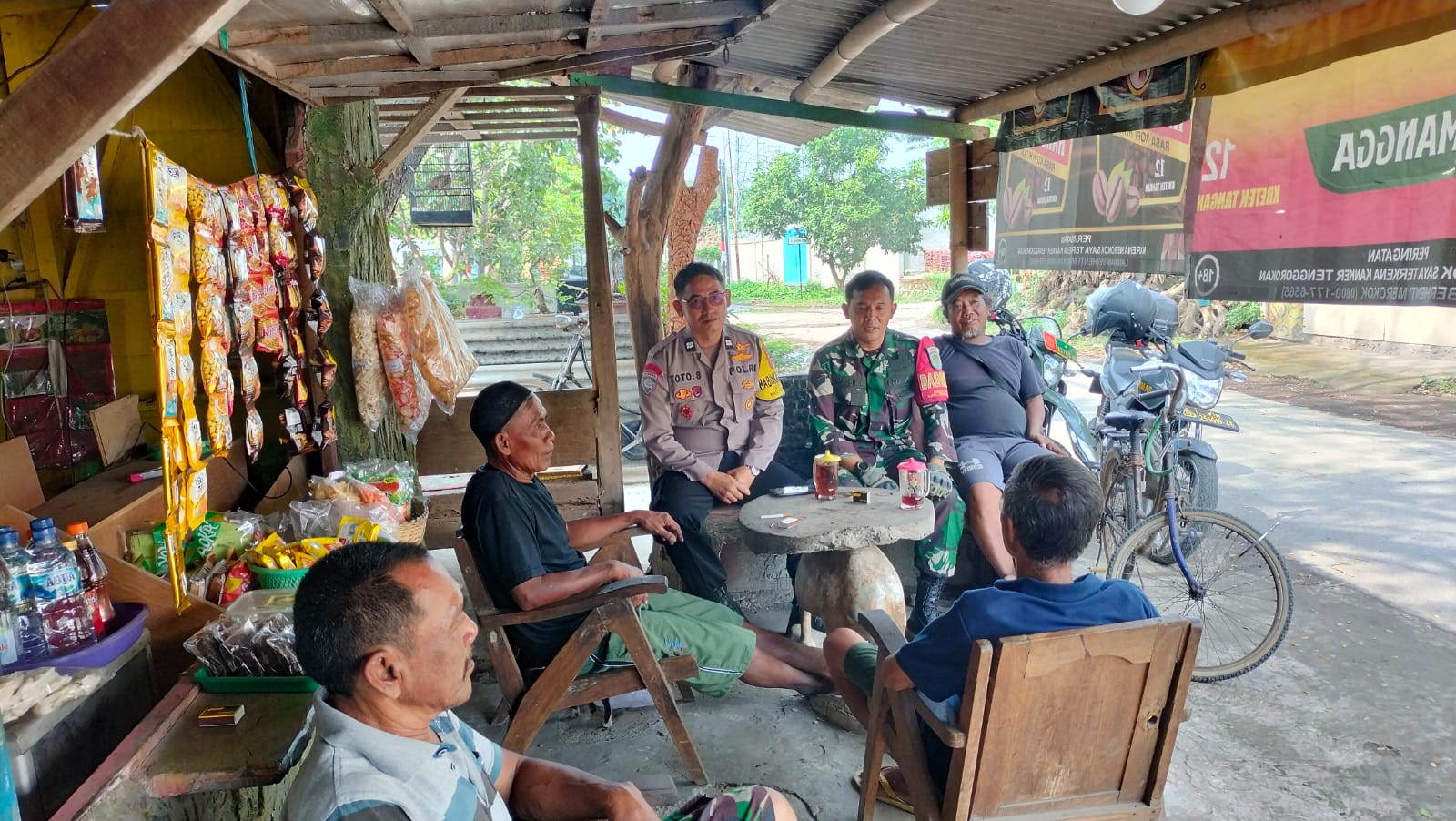 Bhabinkamtibmas Desa Tuk Aiptu Toto Suparta bersama Babinsa sambang dialogis warga blok pembangunan jaya Desa Tuk Kec.Kedawung Wilkum Polres Cirebon Kota diskusi kamtbmas, himbau tingkatkan kewaspadaan dan kondusiitas lingkungan, Selasa ( 09/07/2024).