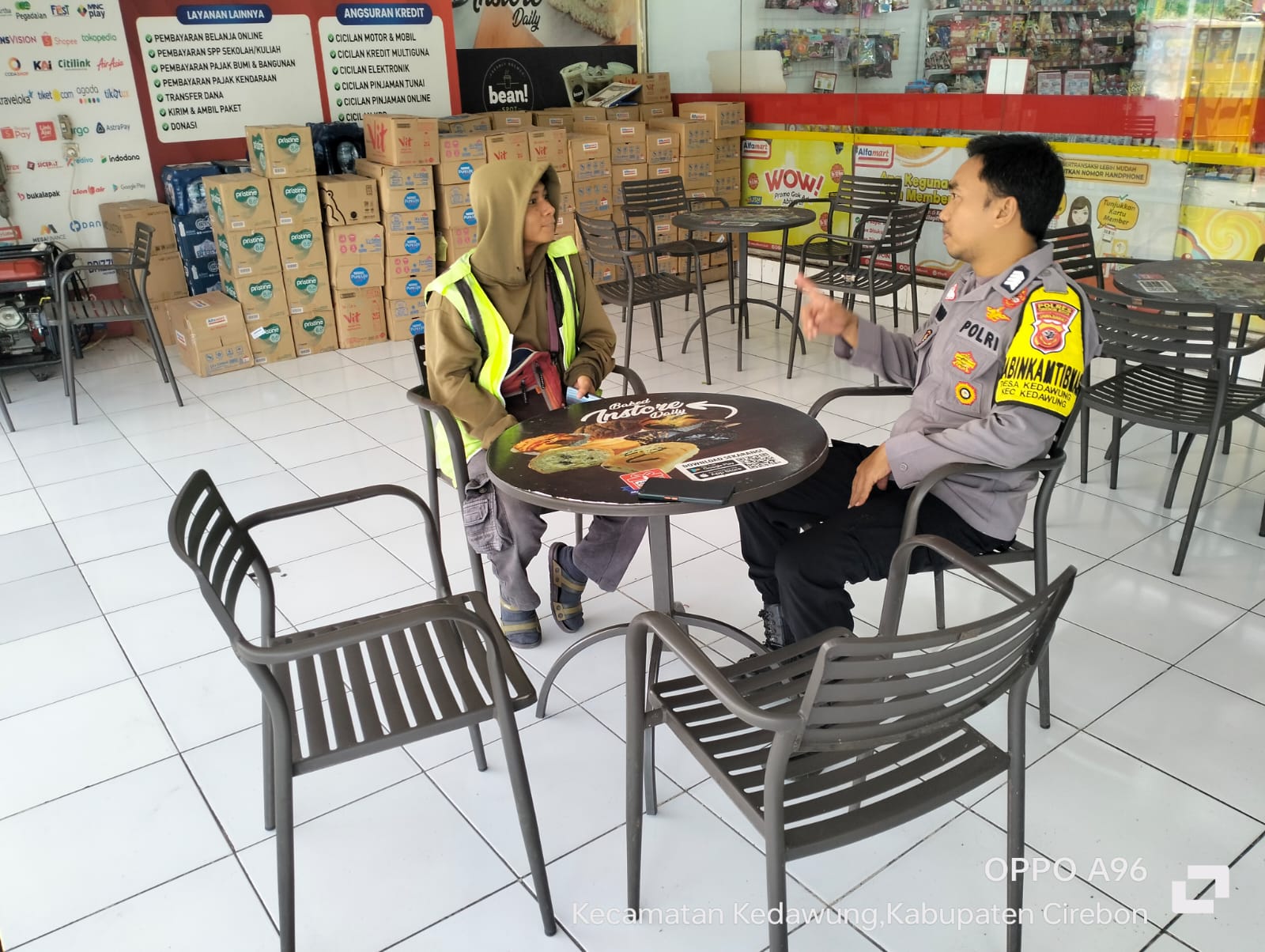 POLRES CIREBON KOTA,-Pastikan aman aman di wilayah desa binaanya. Bhabinkamtibmas Desa Kedawung Polsek Kedawung Polres Cirebon Kota Polda Jabar Bripka Andriyono menyambangi juru parkir mini market Desa Kedawung kecamatan Kedawung Cirebon Kota himbau Kamtibmas dalam rangka Ops Mantap Praja tahun Lodaya 2024, Minggu (01/09/2024).