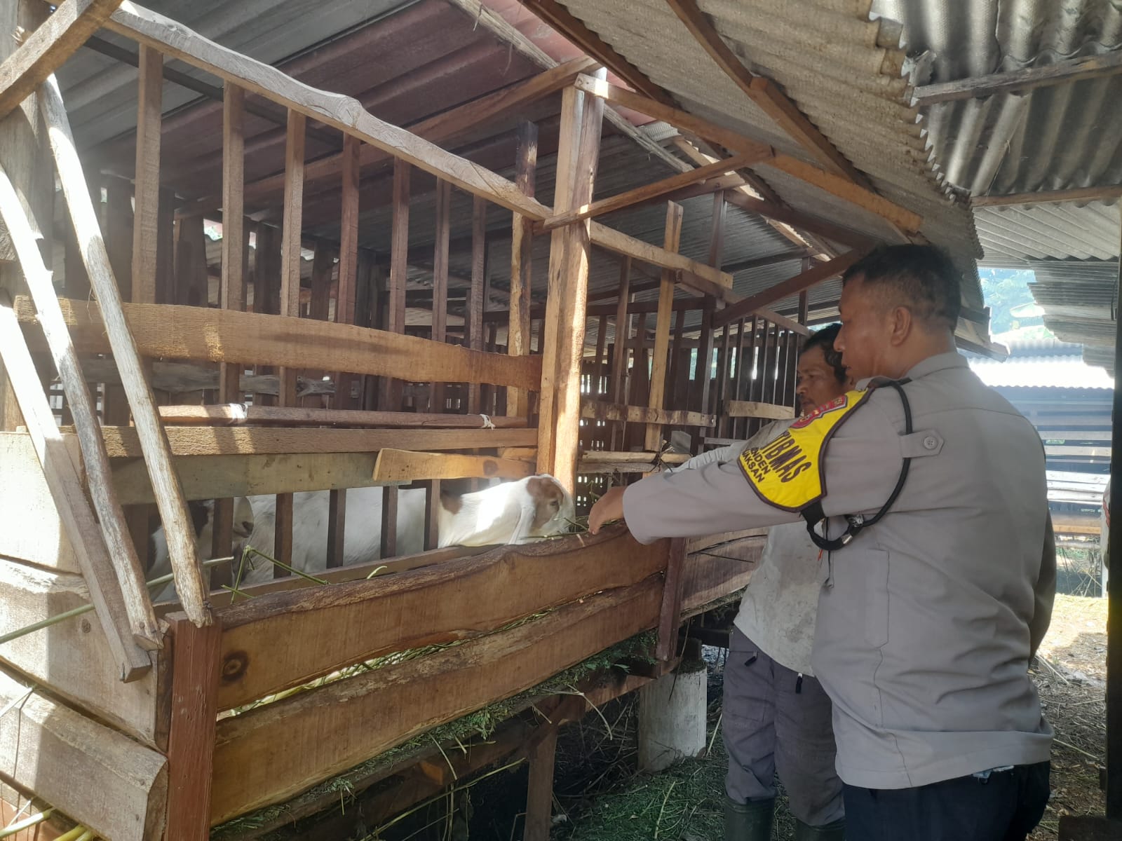POLRES CIREBON KOTA,- jalin komunikasi di wilayah binaan, Bhabinkamtibmas Kelurahan Kesenden Polsek Utbar Polres Cirebon Kota Polda Jabar Aiptu Imam Safei , Sambang Udin warga RW 09 di jalan Samadikun Kelurahan kesenden Cirebon kota selaku peternak kambing, upaya tersebut monitoring ketahanan pangan merupakan budidaya peternakan, sekaligus dengan menyampaikan himbauan Kamtibmas, cooling system Pilkada damai, Jumat (08/11/2024).