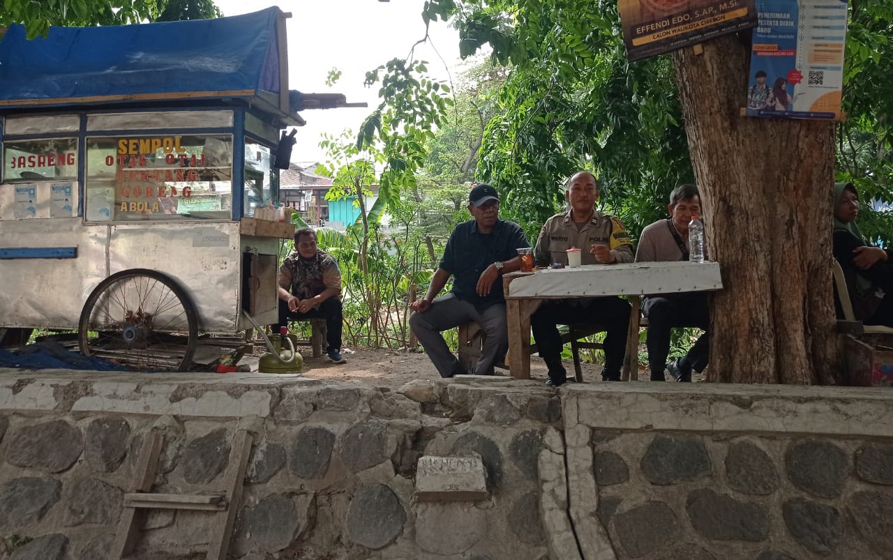 POLRES CIREBON KOTA,- Bhabinkamtibmas kelurahan Sukapura Polsek utbar Polres Cirebon kota Polda Jabar Aiptu waryo jalin komunikasi sinergi Kamtibmas, kepada warga di warung kopi RW 04 pancuran kelurahan Sukapura kecamatan kejaksan Cirebon Kota,ajak dukung cooling system pilkada damai, Kamis (26/09/2024).