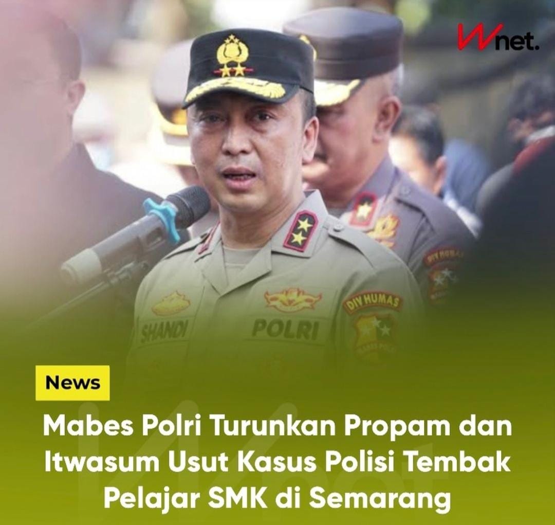 Selasa, 26, November 2024 Mabes Polri menurunkan tim untuk mengusut kasus polisi yang menembak pelajar SMK berinisial GR (17) di Semarang, Jawa Tengah (Jateng).