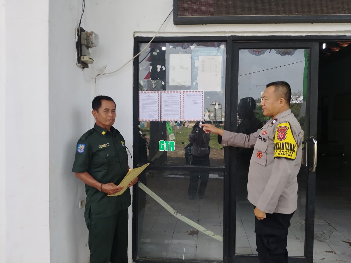 Bhabinkamtibmas Desa Gantar Aiptu Robet Adi S. memasang Maklumat Kapolda Jawa Barat Nomor: Mak/3/VII/2025 di papan informasi Kantor Kuwu Desa Gantar dan Kantor Kecamatan Gantar, Kabupaten Indramayu. Rabu pagi (13/8/2025).
