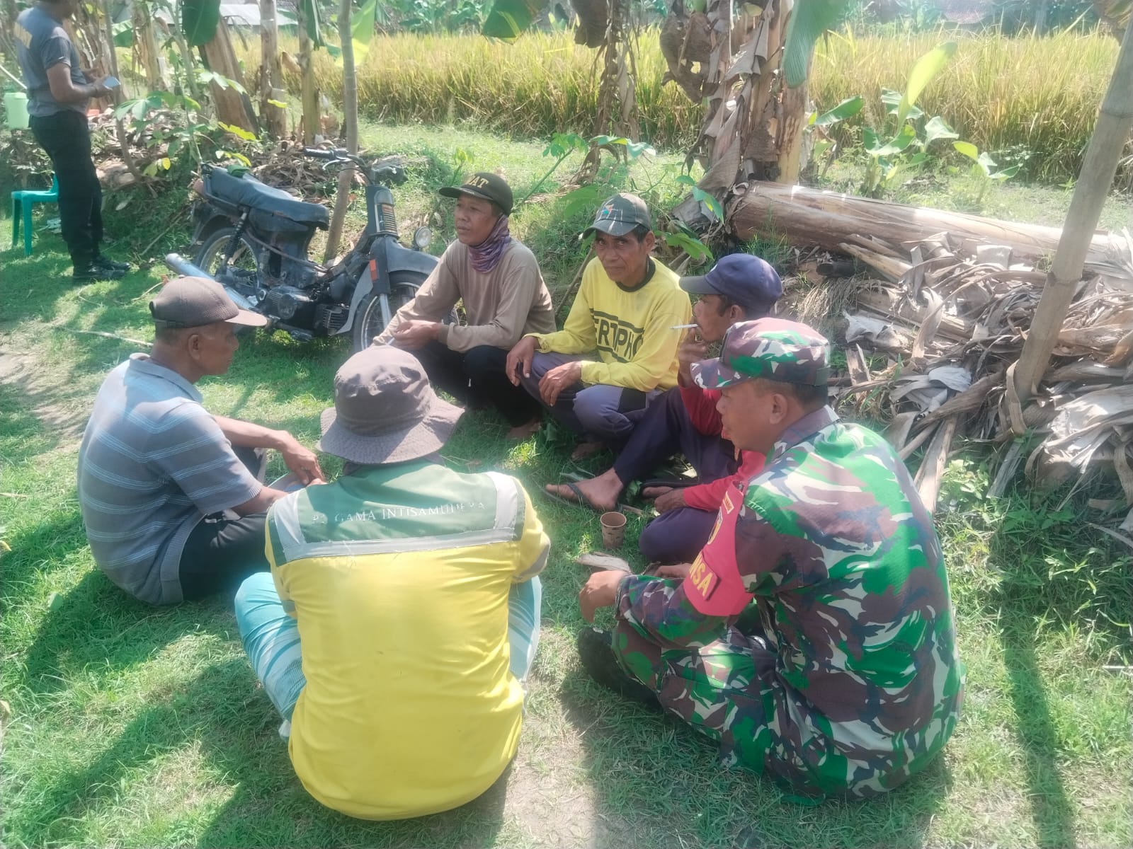 Dalam menjalin komunikasi sosial antara aparat komando kewilayahan dengan masyarakat bisa dilakukan di mana saja. Seperti yang dilakukan Serda Anto Prasetyawan dengan melakukan komsos bersama petani yang siap turun ke sawah.