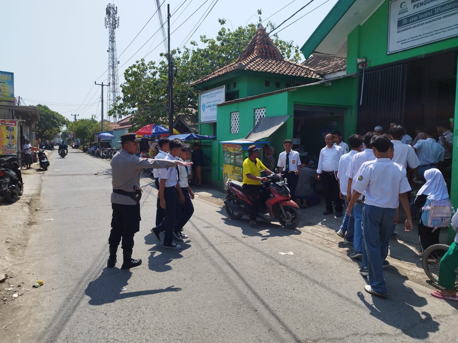 Menjadi Prioritas Pagi Hari, Polsek Anjatan Bantu Masyarakat Dan Anak Sekolah Menyebrang Jalan