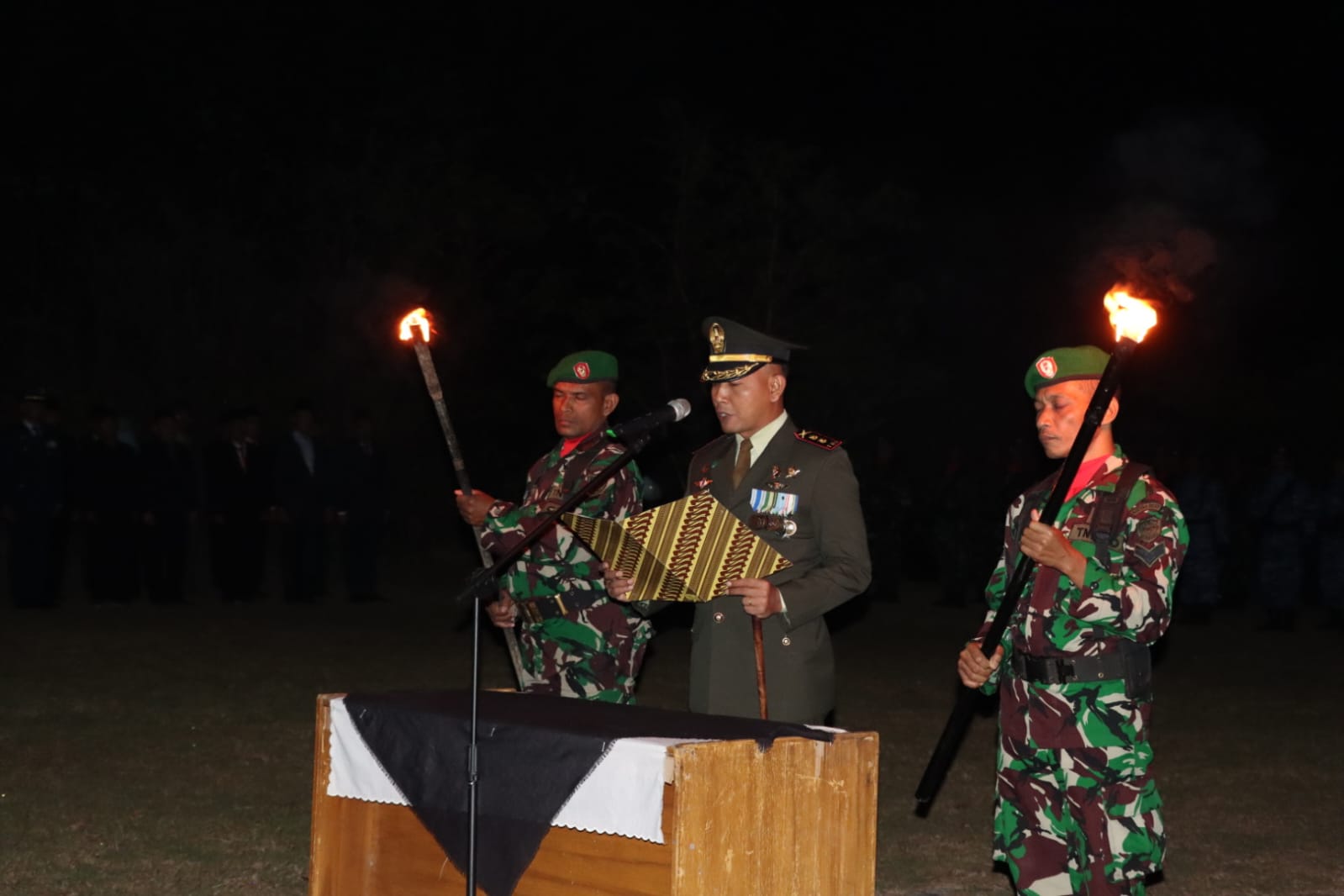 Acara Apel Kehormatan dan Renungan Suci yang digelar pada malam hari tersebut menjadi bagian dari rangkaian persiapan menjelang peringatan Hari Ulang Tahun Republik Indonesia.