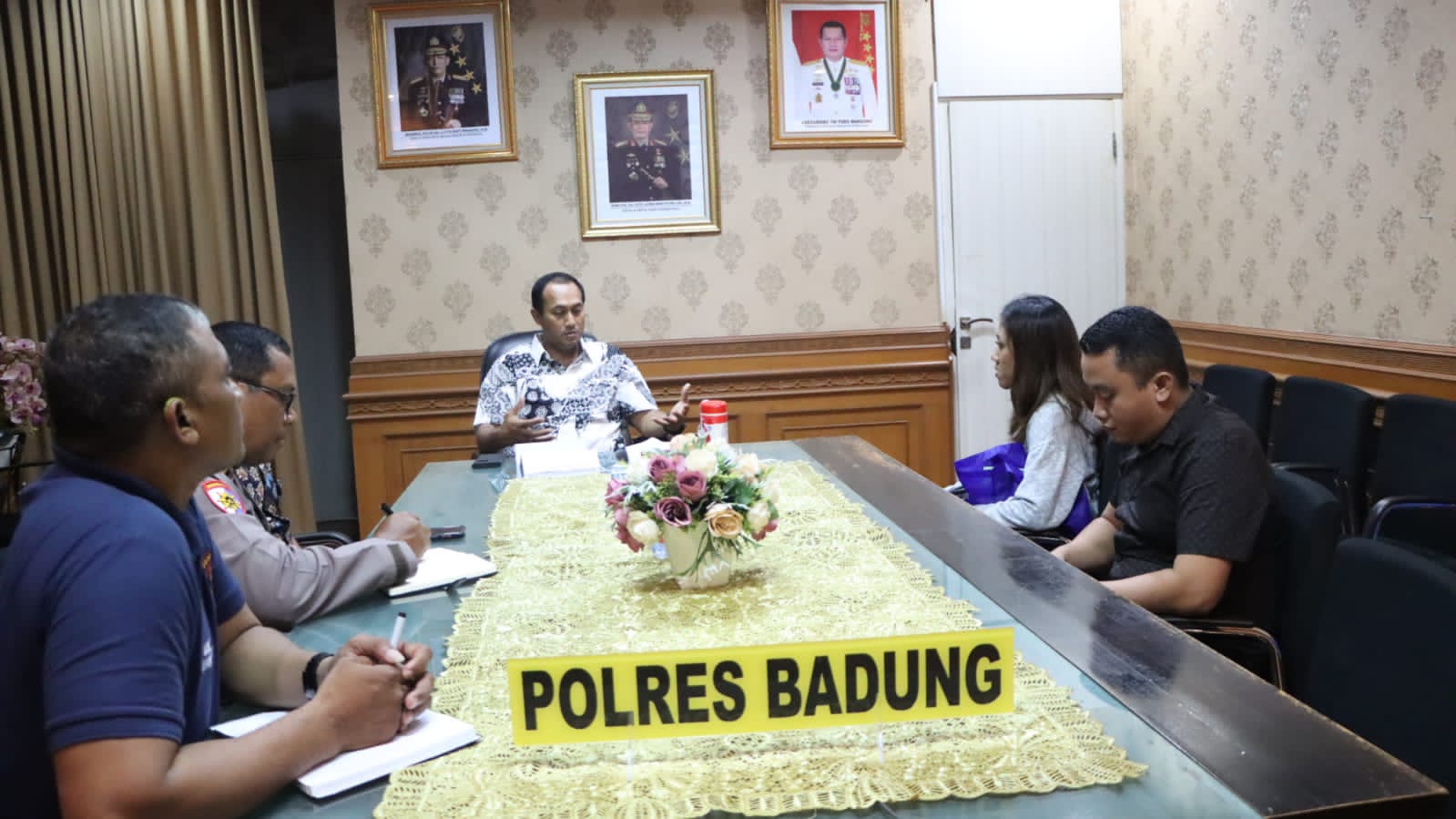 Malam ini, Jumat, (3/2/2023) pukul 20.00 wita, Kepala Kepolisian Resor Badung AKBP Leo Dedy Defretes, SIK, SH, MH menerima pengaduan masyarakat di ruang rapat pimpinan Mapolres jalan Kebo Iwa No 1, Mengwitani, Kecamatan Mengwi, Kabupaten Badung yang juga dihadiri Kasat Reskrim Akp Aris Setiyono, SIK, Kasi Propam, Kasiwas dan Kasi Humas Polres Badung.