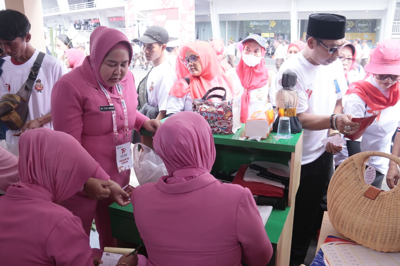 PD Bhayangkari Polda Metro Jaya menggelar stand festival UMKM bagi masyarakat dan pengunjung di Hari lahirnya Bhayangkara ke-77 di sekitar Stadion Utama GBK.