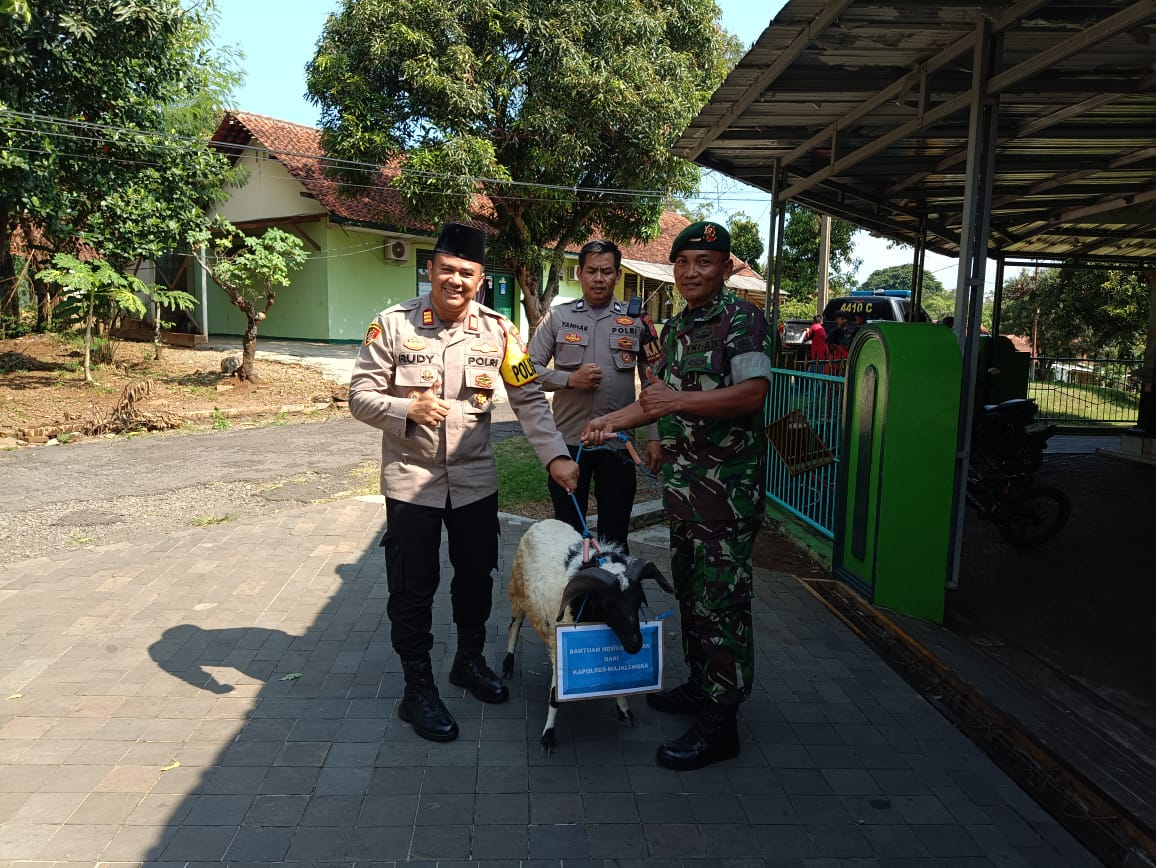 Kapolsek Sukahaji menyampaikan pemberian hewan qurban ini dari Kapolres Majalengka bukan sebagai bantuan melainkan tali asih untuk TNI/Polri bisa saling merasakan kebersamaan.