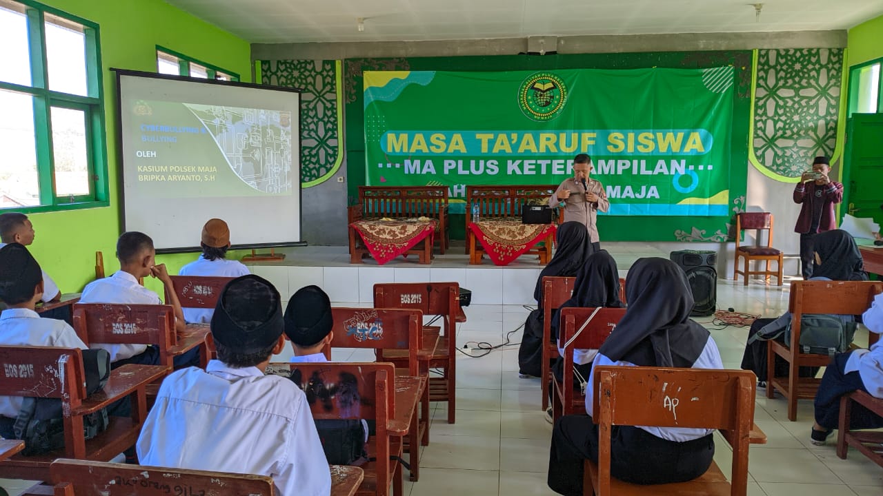 Majalengka,- Mewakili Kapolsek Maja, AKP Kenedy Joko Lelono,Kasium Polsek Maja Bripka Aryanto memberikan materi tentang pencegahan bullying dan cyberbullying kepada siswa-siswi dalam kegiatan Masa Pengenalan Lingkungan Sekolah (MPLS) di MAPK NU Maja pada Rabu (17/7/2024). Kegiatan tersebut dihadiri oleh Kepala MAPK NU Maja, Endin Muhtadin, M.Pd., Wakasek Kesiswaan, Arif Rahman Syahid, S.Ag., Pembina Osis, Fitri Amalia Zahra, M.Pd., serta siswa-siswi yang mengikuti MPLS.