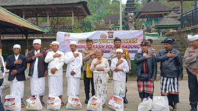 “Mari kita ciptakan situasi Kamtibmas yang kondusif, beda dalam pilihan saat Pilkada itu wajar, namun jangan karena beda pilihan kita jadi ribut yang nantinya rugi kita sendiri dan juga orang lain.” Pesannya yang dilanjutkan dengan Poto bersama serta penyerahan tali asih berupa paket sembako kepada para pemangku (tokoh agama) dan masyarakat Br. Tinggan Desa Pelaga Kecamatan Petang.