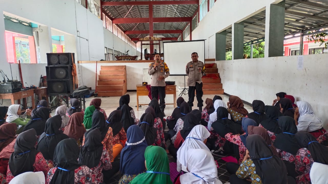 Suasana aula SMP Negeri 1 Gabuswetan, Kabupaten Indramayu, tampak dipenuhi ratusan pelajar baru yang serius menyimak materi pembinaan dari kepolisian. Kamis (17/7/2025) kemarin.