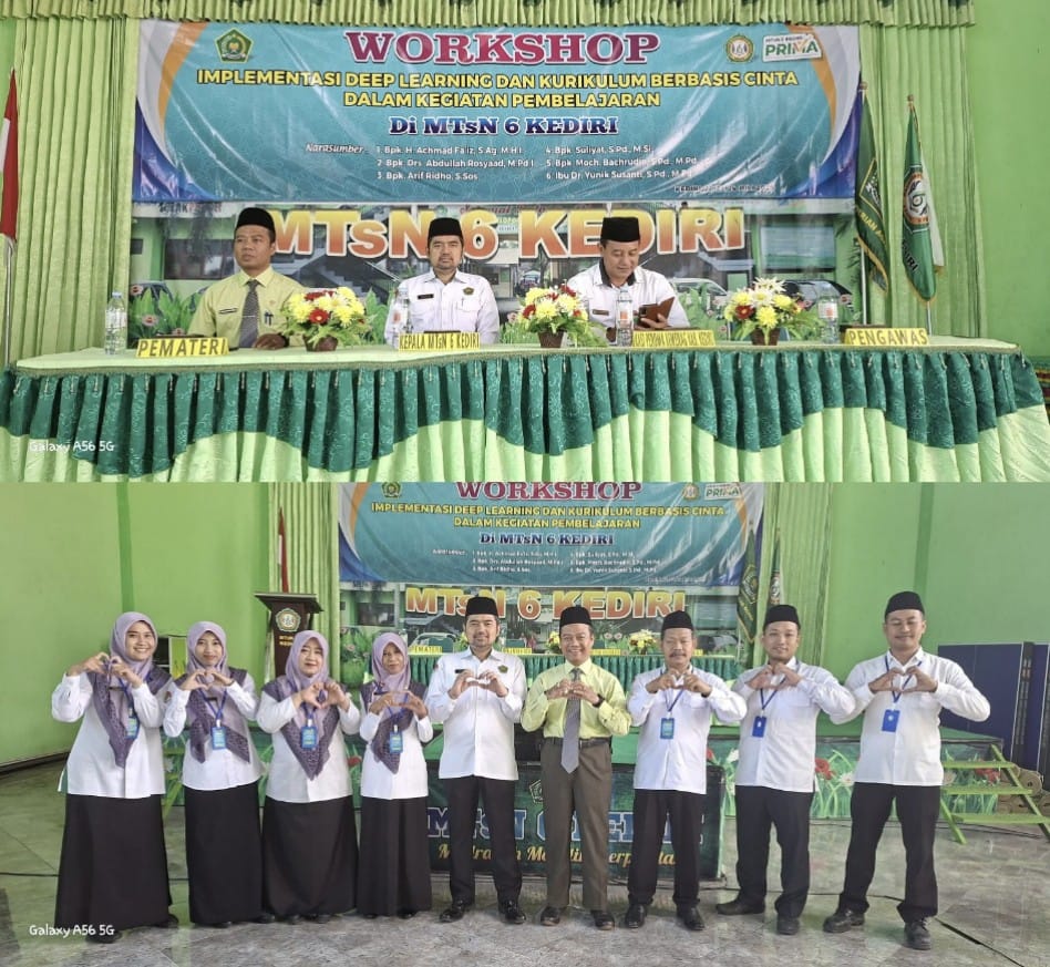 KEDIRI, BJ BUSERJATIM. COM-Madrasah Tsanawiyah Negeri (MTsN) 6 Kediri hari ini memulai Workshop Implementasi Deep Learning dan Kurikulum Berbasis Cinta dalam kegiatan pembelajaran. Acara yang berlangsung selama tiga hari, mulai tanggal 22 hingga 24 Juli 2025 ini, diikuti oleh seluruh tenaga pendidik dan kependidikan MTsN 6 Kediri serta anggota Kelompok Kerja Madrasah (KKM) MTsN 6 Kediri.