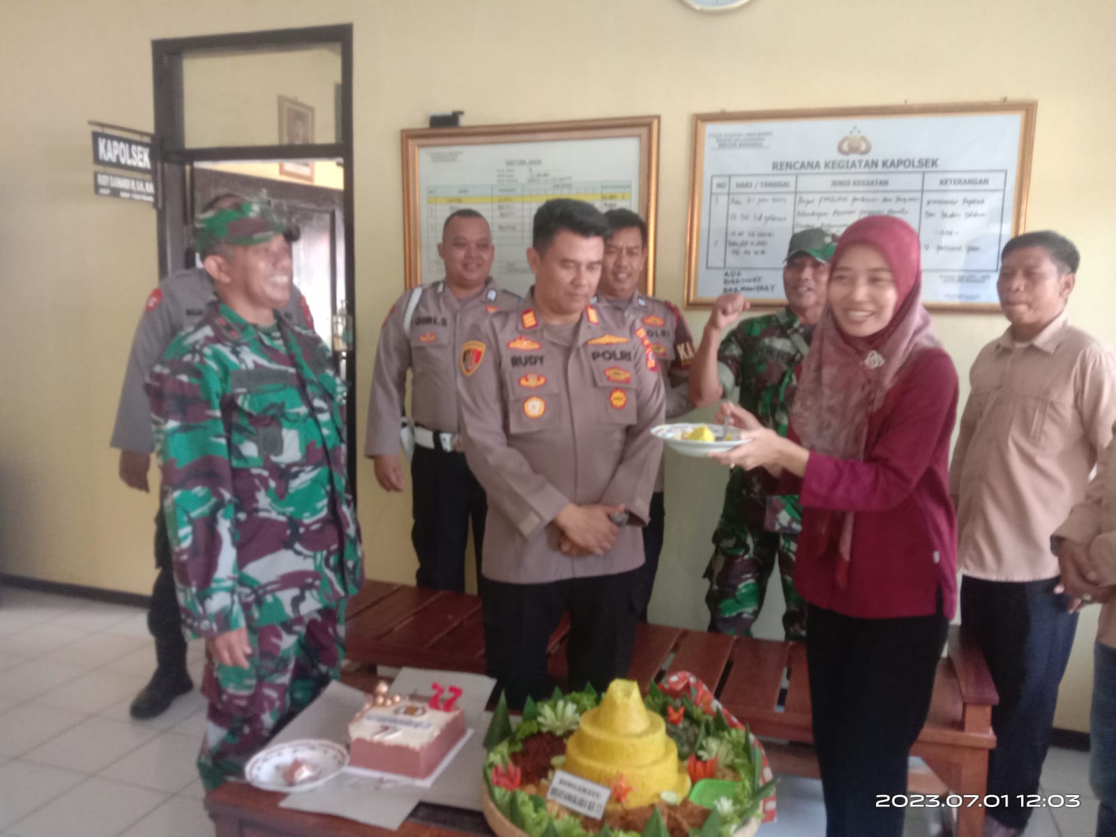 Danramil Sukahaji Kapten Inf.Nana Rudmana mengatakan, kedatangan ke kantor Polsek Sukahaji memang dilakukan secara mendadak. Kapolsek sendiri tidak tahu kita akan datang agar surprise. Saat datang, pihaknya membawa nasi tumpeng.