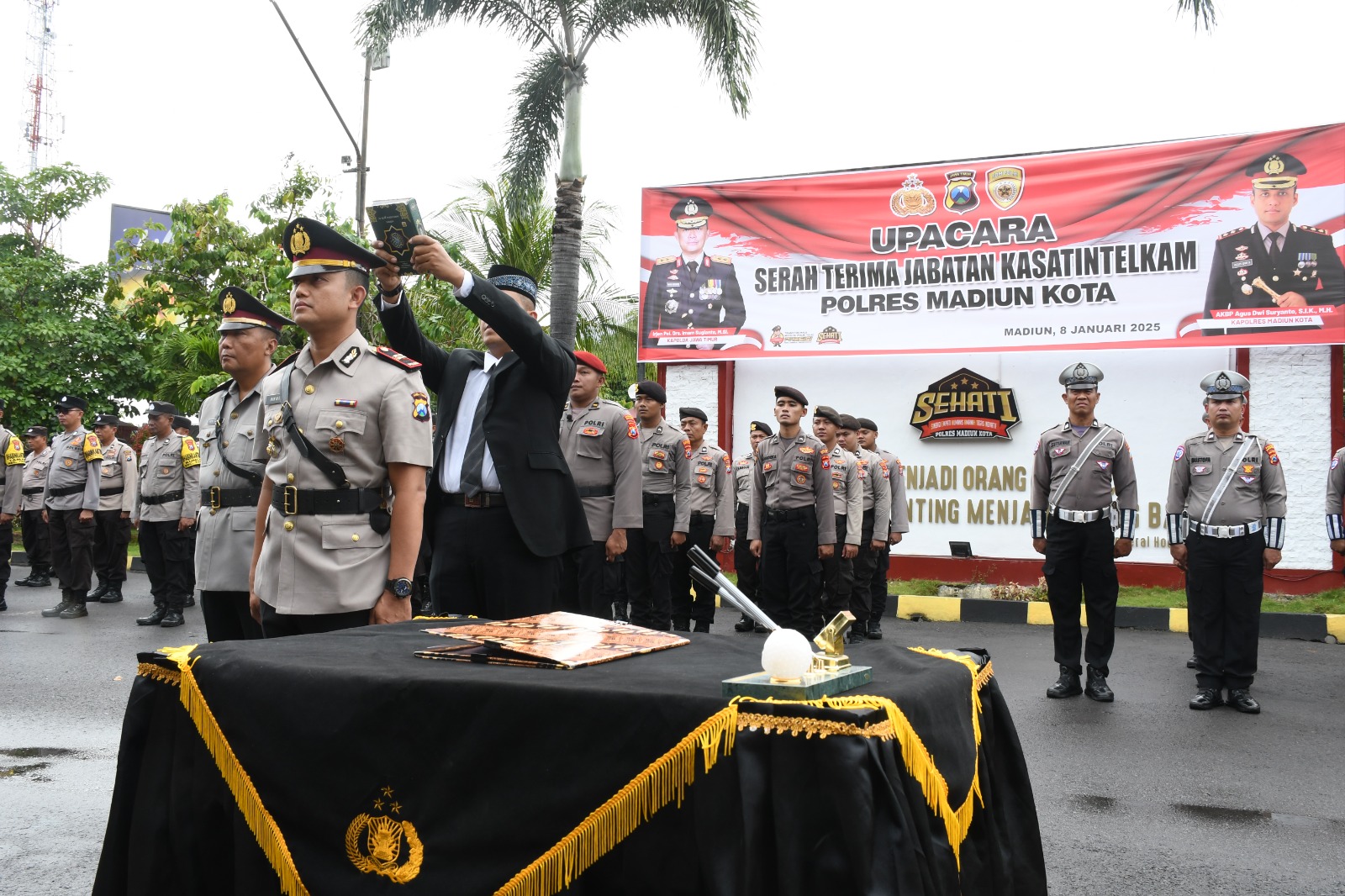 Pada upacara sertijab Kasat Intelkam yang baru yaitu Iptu Imam Walid Romadhon, SH,.MH diketahui sebelumnya menjabat sebagai KBO Intelkam Polres Madiun kini menjadi Kasat Intelkam Polres Madiun Kota, Sedangkan Iptu Heru, SH menjabat sebagai Kasubbag strajemen Bagren Polres Madiun
