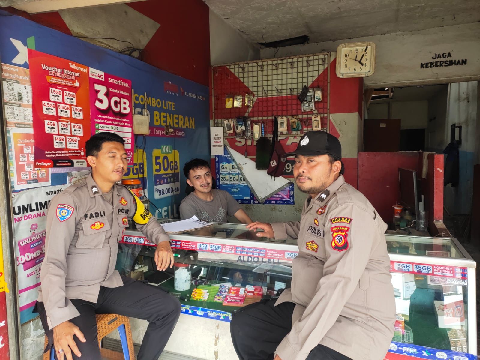 Majalengka – Suatu upaya yang dapat dilakukan untuk menjalin komunikasi dengan warga sekaligus menyampaikan pesan-pesan kamtibmas kepada warga, Personil Polsek Cikijing Polres Majalengka Polda Jabar Ka SPKT lll Aipda Hencky dan Bhabinkamtibmas Briptu Fadli melaksanakan patroli ke konter HP yang berada di Blok Cirawa Desa Cikijing, Kecamatan Cikijing, Kabupaten Majalengka, Senin (12/06/2023).