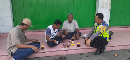 Sambil ngopi, memberikan himbaun dan pesan pesan kamtibmas kepada masyarakat.