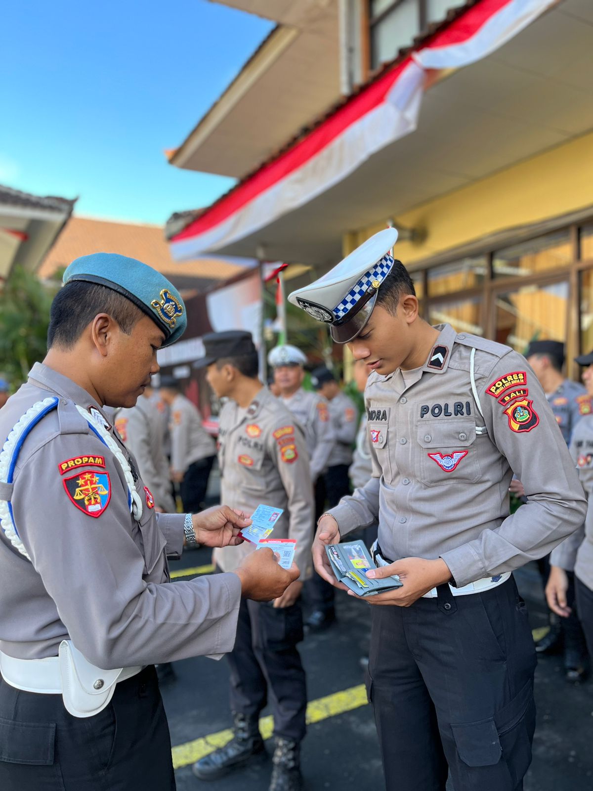 Kasi Propam Polres Kawasan Bandara I Gusti Ngurah Rai Ipda I Gede Susansi memberikan apresiasi kepada personil mengenai tidak adanya ditemukan pelanggaran saat pelaksanaan kegiatan Gaktibplin (Penegakkan Penertiban Disiplin) di halaman Mapolres, selasa (11/7/2023).