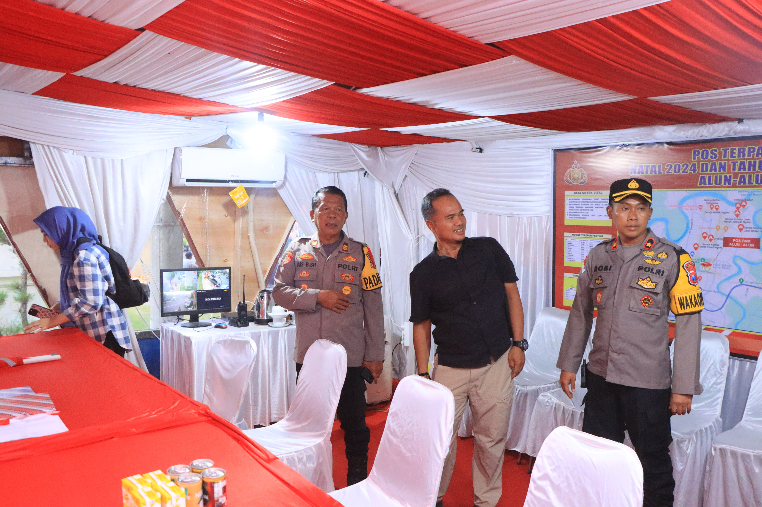Dalam kunjungannya di Pos terpadu alun-alun Merdeka Ngawi, tim diterima Wakapolres Ngawi Kompol Achmad Robial, S.E., S.I.K., M.H., didampingi Kabag Ops Kompol Khristanto Widhy Nugroho, S.H., Kasat Lantas AKP Yuliana Plantika, S.T.K, S.I.K, M.Si dan Kapolsek Ngawi Kota AKP Jais Bintoro, S.H., serta Kasipropam Iptu Suroyo.
