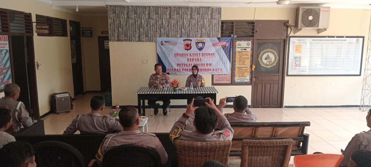 Menindaklanjuti akan Program Polisi RW, Binmas Polres Cirebon Kota dipimpin langsung Kasat Binmas AKP Sudarsono, SH memberikan arahan kepada anggota Polsek Utbar yang mengemban Polisi RW jajaran Polres Cirebon Kota, Kamis (10/08/2023) bertempat di Aula Mapolsek Utbar.