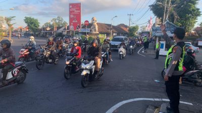 Kabag Ops Polres Badung Kompol I Gede Made Surya Atmaja. P, S.Sos, MH pagi-pagi menegur pengendara sepeda Motor tanpa helm di Simpang Sempidi, Kelurahan Sempidi, Kecamatan Mengwi, Kabupaten Badung, Bali. Senin, (14/8) pagi pukul 07.20 WITA. Sekaligus cek kesiapan personil yang terlah tegelar untuk mengatur arus lalu lintas.