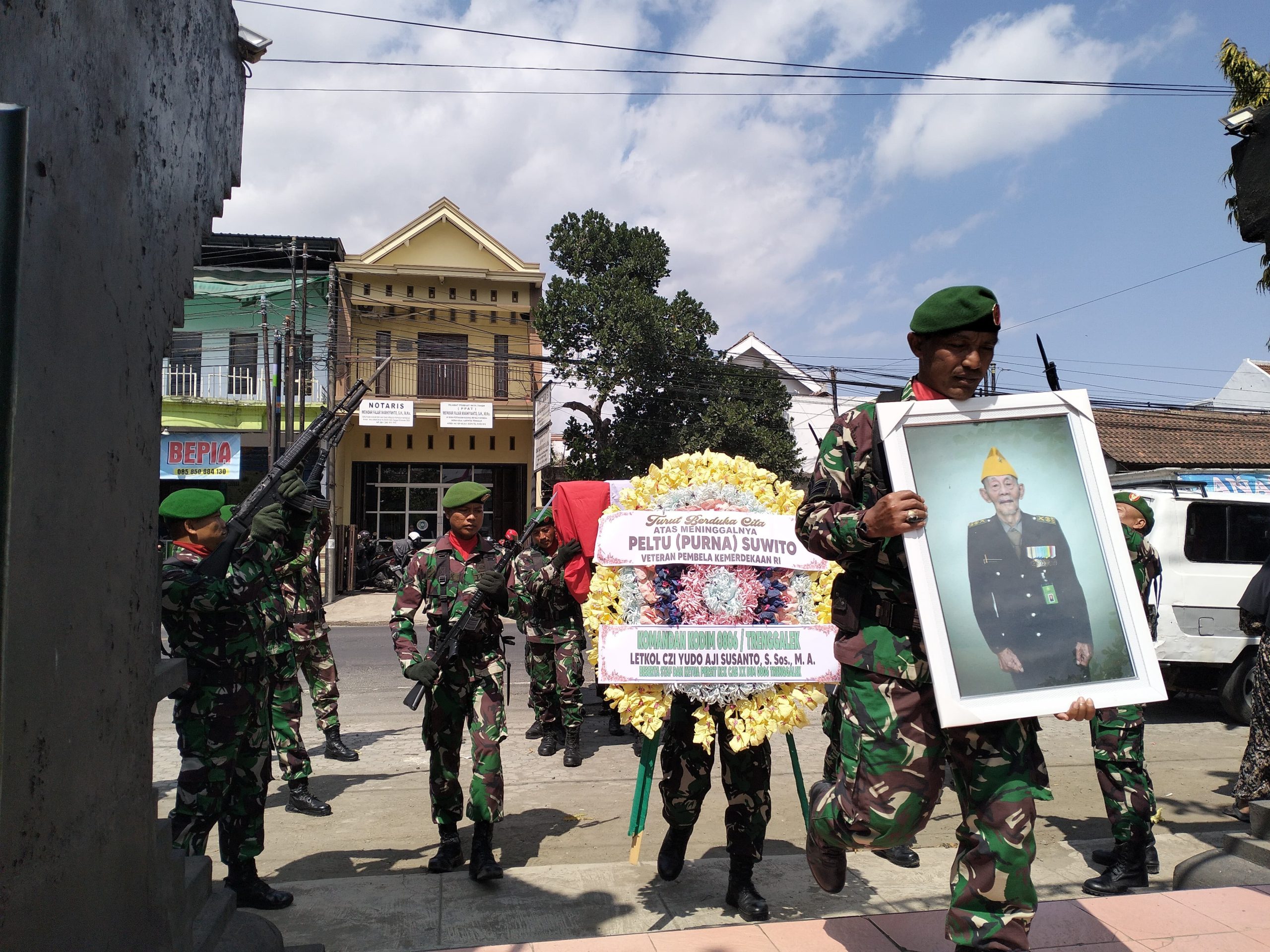 Kehadiran para Perwira Staf dan Danramil jajaran Kodim 0806/Trenggalek, Ketua Legiun Veteran Republik Indonesia (LVRI) Trenggalek, Peltu Purna H. Sutrisno, perwakilan LVRI, dan satu SST Pasukan Bersenjata Kodim 0806/Trenggalek, menunjukkan betapa besarnya penghargaan yang diberikan kepada almarhum. Tak ketinggalan, anggota Kodim 0806/Trenggalek, perwakilan Warakawuri, dan para pentakziah turut memberikan penghormatan terakhir, sebagai wujud cinta dan rasa hormat kepada sosok yang telah berjasa besar.