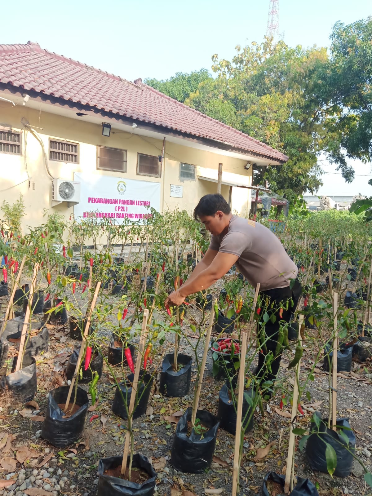 Indramayu – Anggota Polsek Widasari Polres Indramayu Polda Jabar AIPDA Endri melaksanakan panen cabai merah di pekarangan belakang Mapolsek Widasari, Desa Kongsijaya, Kecamatan Widasari, Kabupaten Indramayu, Minggu (27/7/2025).