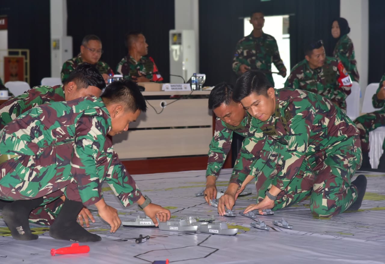 SORONG PBD, BUSERJATIM.COM GROUP – Pada Latposko Armada Jaya (AJ) XLII 2024, Panglima Komando Armada (Pangkoarmada) III Laksamana Muda TNI Hersan S.H., M.Si., selaku Panglima Komando Tugas Laut Gabungan (Pangkogaslagab) menginstruksikan kepada para Staf Kogaslagab untuk menguji kematangan konsep Rencana Operasi (RO) yang sudah disusun, dengan melaksanakan Tactical Floor Game (TFG) bertempat di Gedung Serba Guna Maspardi Koarmada III Katapop, Kabupaten Sorong Papua Barat Daya. Rabu (14/08/24).
