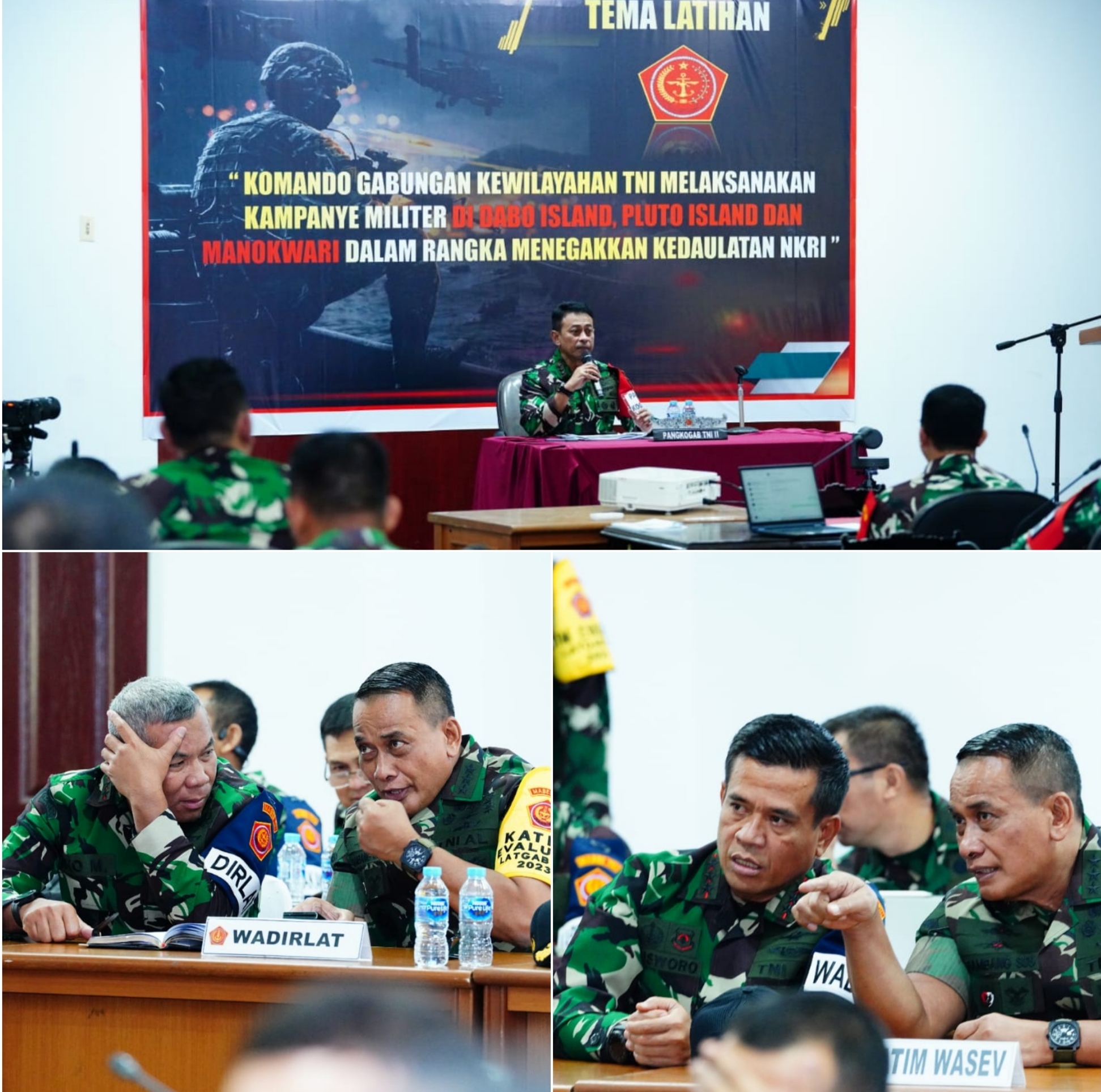 Pada briefing penentuan CB dan Konsep Umum Kampanye Militer ini turut hadir Inspektur Jenderal (Irjen) TNI Letjen TNI (Mar) Bambang Suswantono, S.H., M.H., M.Tr.(Han) selaku Kepala Tim (Katim) Pengendali, Komandan Pendidikan Dan Latihan (Dankodiklat) TNI, Letjen TNI Eko Margiyono, M.A., Selaku Direktur Latihan (Dirlat) dan Komandan Sesko TNI Marsdya TNI Kusworo, S.E., M.M., Selaku Wakil Direktur Latihan (Wadirlat) pada Latihan Gabungan TNI Tahun 2023 ini.