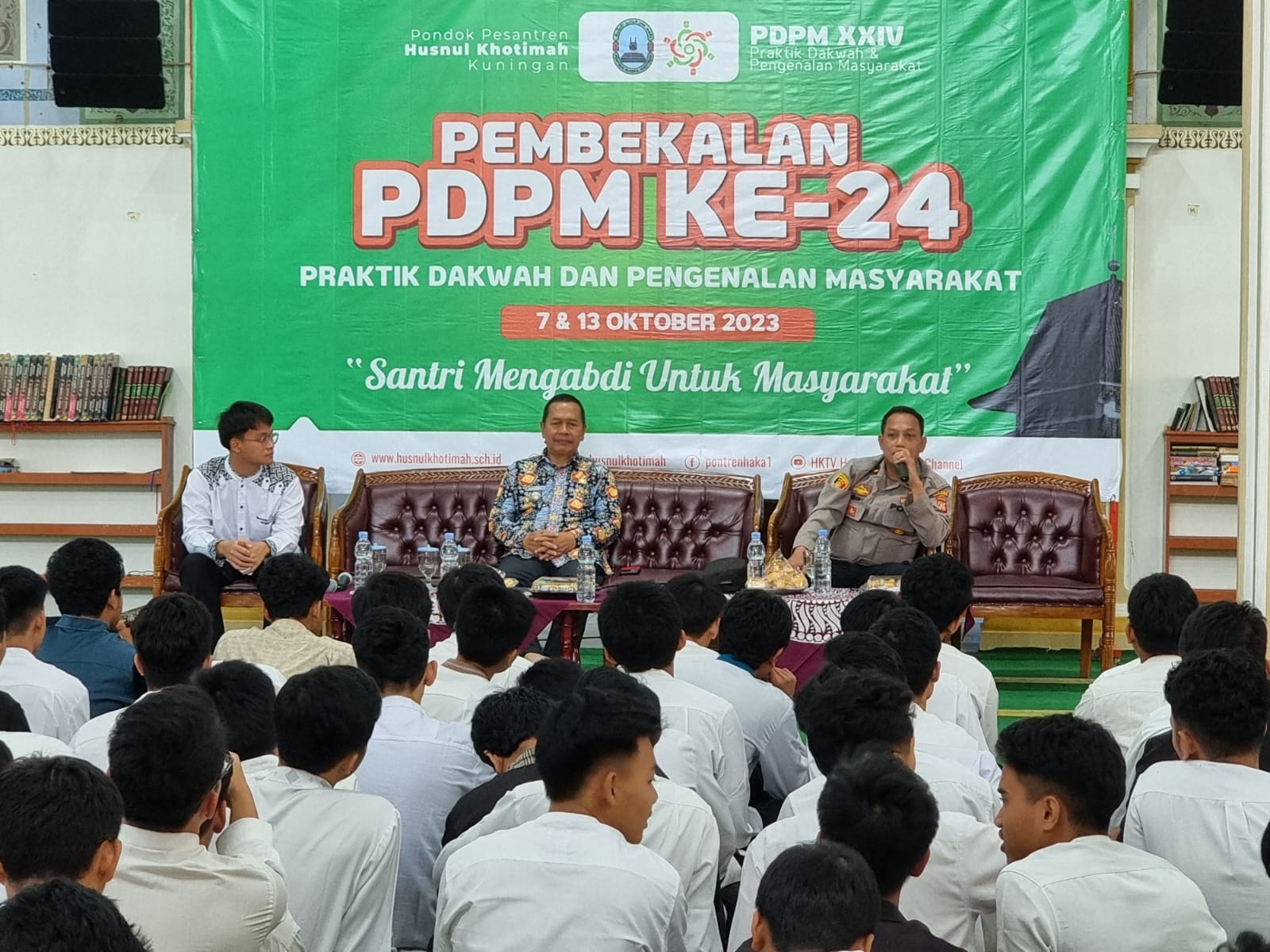 Majalengka – Sesuai arahan dari Kapolres Majalengka Polda Jabar AKBP Indra Novianto,S.I.K.,M.Si., CPHR., Kapolsek Cikijing AKP Rudy Djunardi M, S.H., M.H.melalui Panit Binmas Polsek Cikijing Polres Majalengka Polda Jabar IPDA Brigmono R, S.H memberikan Arahan Kepada Santri menjelang Praktek Dakwah dan Pengenalan Masyarakat (PDPM) dengan tema “Santri Mengabdi Untuk Masyarakat” di Wilayah Cikijing yang akan dilaksanakan pada tgl 29 Oktober 2023 oleh para Santriwan berjumlah 365 Santriwan dari Pondok Pesantren Husnul Khotimah Kuningan, Sabtu (14/10/2023).